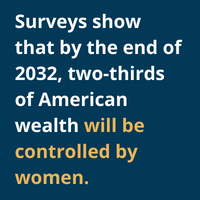 Specifically for women end-clients, think about this: Surveys show that by the end of 2032, two-thirds of American wealth will be controlled by women, and I can tell you firsthand, women prefer working with women. Similarly, I know that women really care about networking and getting referrals they can trust.