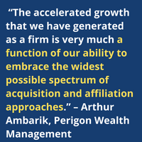 "Perigon has been successful creating a niche for like-minded advisors focusing on not just high net worth clients, but also HNW clients that are among the new generations of wealth from the tech industry and other entrepreneurs. Now that Perigon has achieved some scale, I would expect them to continue to have success in this part of the industry."