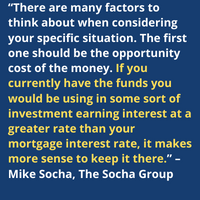 Mike Socha: As many people enter the next phase of their life, retirement, there is always the question of "Should I pay my home off or keep my existing mortgage?" Using the example from this question, I think the answer is, "It depends."
