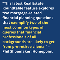 This latest Real Estate Roundtable feature explores two mortgage-related financial planning questions that exemplify two of the most common types of queries that financial professionals of all backgrounds are likely to get from pre-retiree clients – Especially clients considering a big change that likely wasn’t in the cards just a few years ago.