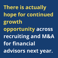 Well, let’s take a closer look at the prevailing trends in financial advisor recruitment. Market and economic uncertainties notwithstanding, there is actually hope for continued growth opportunity across recruiting and M&A for financial advisors next year.