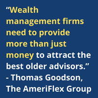 Wealth management firms need to provide more than just money to attract the best older advisors and, importantly, gain access to their books of business once they do choose to retire. Firms must provide the tools to transition an advisor’s business and keep their clients well-served after retirement.