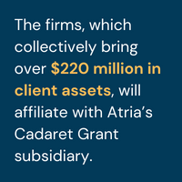 “We are pleased to welcome Brad, Dominick and their teams to Atria and Cadaret Grant,” Kevin Beard, Atria’s Chief Growth Officer and Founding Partner, said in the press release. “Our robust support tools, award-winning technology and deeply engrained service culture will also position them to grow organically by expanding their ability to offer highly-tailored and personalized client support.”
