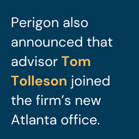 Perigon also announced that veteran financial advisor Tom Tolleson joined the firm’s new Atlanta office, which has five other advisors. He previously served at Catalyst Wealth Management. “When I was exploring my options in the region, I felt an immediate connection with the Perigon team here in Atlanta,” Tolleson said in the press release.