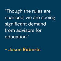 Though the rules are nuanced, we are seeing significant demand from advisors for education so they can use the new law to build relationships with business owners, charge a minimum or flat-rate fee to service the plan and create cross-selling opportunities with participants.