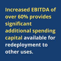 - Increased EBITDA of over 60% provides significant additional spending capital available for redeployment to other uses.