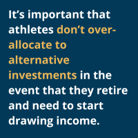 Athletes typically have peak earnings in their 20s. It’s important that they don’t over-allocate to alternative investments in the event that they retire and need to start drawing income from their investment portfolio.
