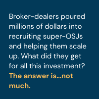 Toward that end, broker-dealers poured millions of dollars into recruiting super-OSJs and helping them scale up, providing them with massive amounts of assistance to recruit, transition and serve advisors.