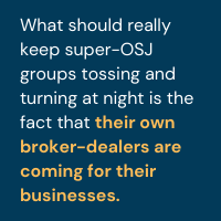 In 2021, however, that is no longer the case. More innovative and forward-looking advisor groups across the industry will be coming for their business – and getting more aggressive by the month. What should really keep super-OSJ groups tossing and turning at night, though, is the fact that their own broker-dealers are coming for them, as well.