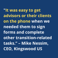 “It was easy to get advisors or their clients on the phone when we needed them to sign forms and complete other transition-related tasks.”
