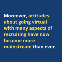 Moreover, attitudes about going virtual with many aspects of recruiting have now become more mainstream than ever.