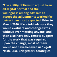 BridgeMark’s Jeff Nash points out that the biggest hurdle that firms and advisors cleared was attitudinal.