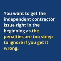You want to get the independent contractor issue right in the beginning as the penalties are too steep to ignore if you get it wrong.