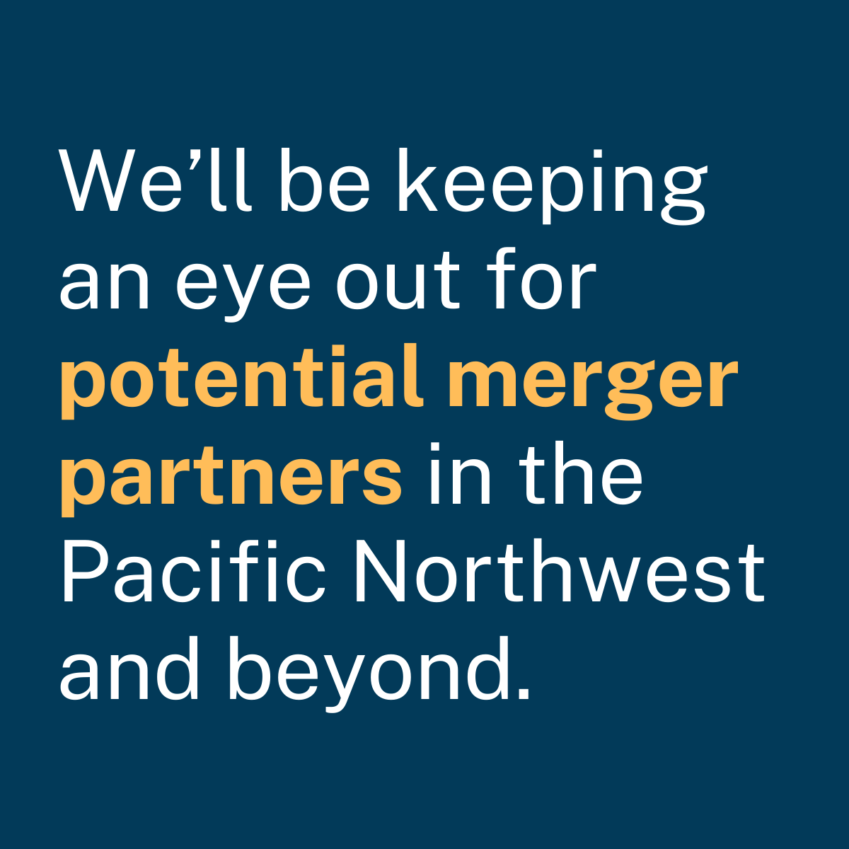 We’ll be keeping an eye out for potential merger partners in the Pacific Northwest and beyond that share our interest in building long-term value for our employees and clients.