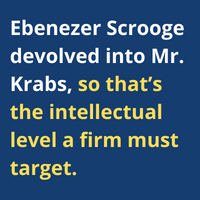 Of course no one has read “A Christmas Carol” by Charles Dickens, or even seen any of the multiple movie adaptations. Ebenezer Scrooge devolved into Mr. Krabs, so that’s the intellectual level a firm must target.