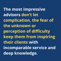The most impressive advisors don’t let complication, the fear of the unknown or perception of difficulty keep them from inspiring their clients with incomparable service and deep knowledge.