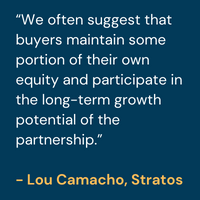 Camacho warns sellers to exercise caution when seeking equity compensation. “High levels of debt and already inflated multiples could limit the upside potential of the equity. We often suggest that buyers maintain some portion of their own equity and participate in the long-term growth potential of the partnership.”