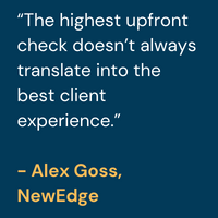 Goss says that regardless of impact on advisors, the equity versus cash balance in an offer should not impact clients, but cautions advisors to “focus on moves that first benefit the overall client experience over the amount a firm is willing to pay. The highest upfront check doesn’t always translate into the best client experience.”
