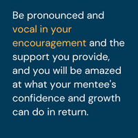 Encourage growth. I owe most of my personal and professional growth to my mentors, as they continuously pushed me out of my comfort zone while consistently supporting and encouraging me. This sparked confidence within me that helped create opportunities for that growth to shine. Be pronounced and vocal in your encouragement and the support you provide, and you will be amazed at what your mentee's confidence and growth can do in return.