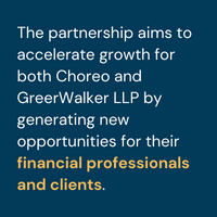 “Partnering with GreerWalker is a special opportunity,” Choreo CEO Larry Miles said in the press release. “Our firms have a strong philosophical alignment, shared CPA heritage and a complementary vision for future growth.”