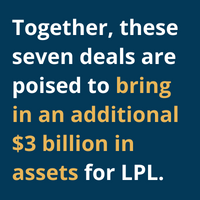 Why it matters: These are just two of the seven recruitment deals that LPL announced during a 30-day period, which also included advisors from Merrill Lynch, Wells Fargo, Edward Jones and AIG Retirement Services. Together, these seven deals are poised to bring in an additional $3 billion in assets for LPL.