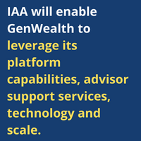 Why it matters: IAA, which supervises over $15 billion in assets, is in due diligence for two additional minority stake acquisitions, and in the last three years completed four M&A transactions and helped its network of independent advisors complete 12 other M&A deals, according to a spokesperson. IAA also has an in-house Director of M&A and Certified Valuation Analyst, Kyle Campbell, who played a central role in the GenWealth deal. IAA will enable GenWealth to leverage its platform capabilities, advisor support services, technology and scale.