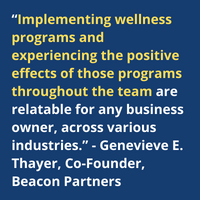 Thayer explains, “Implementing wellness programs and experiencing the positive effects of those programs throughout the team are relatable for any business owner, across various industries.”