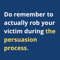 While these techniques yield excellent results, do remember to actually rob your victim. Otherwise, you’re working for free.