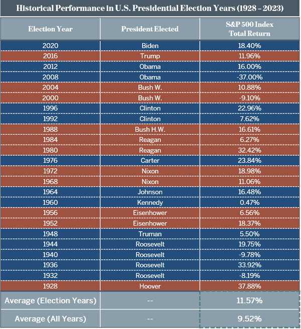 The short answer: Although bouts of volatility are possible in an election year if the trading environment turns to one driven by emotion rather than a normal, fundamentally driven environment, average returns exhibited by the S&P 500 Index during presidential election years actually outpace the long-term average.