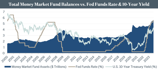 As we look toward 2024, we are surprised by the level of complacency that is apparent across the investment community. With money market yields at 20-year highs, increasing chances of an economic slowdown and a presidential election year on the horizon, some financial advisors are comfortable sitting on the sidelines.
