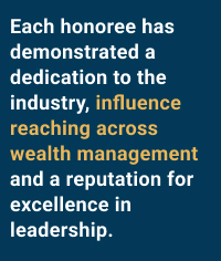 Each honoree has demonstrated a dedication to the industry, influence reaching across wealth management and a reputation for excellence in leadership, and WSR is proud to recognize them for their achievements and inspiration to our industry.