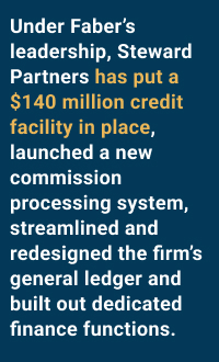 Under Faber’s leadership, the firm has put a $140 million credit facility in place to support future growth, launched a new commission processing system to improve efficiency, streamlined and redesigned the firm’s general ledger and built out dedicated finance functions including financial planning and analysis, procurement and real estate.