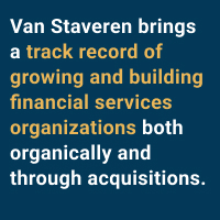 Van Staveren brings a track record of building and growing financial services organizations both organically and through acquisitions. Before Edelman, she served at various roles in Goldman Sachs, including CFO of the Personal Financial Management Group, where she played a role in the integration of Ayco and United Capital, and COO of the Americas institution business within Goldman Sachs Asset Management.