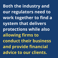 I believe the industry needs the time and space to implement these rules and allow them to work before forcing new rules into the mix. The constant churn and change of new rules lead to confusion and uncertainty, not just for the industry but for the investors we protect and serve.