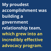My proudest accomplishment was building a government relationship team, which grew into an incredibly effective advocacy program. All these experiences have prepared me for my current opportunities here at Commonwealth.