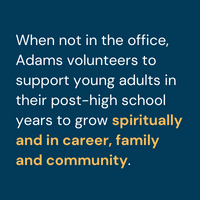 When not in the office, Adams volunteers at Atlanta’s Greater Community Church and the Bridge at ATL, an organization that supports young adults in their post-high school years to grow spiritually and in career, family and community.
