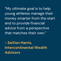 “My ultimate goal is to help young athletes manage their money smarter from the start and to provide financial advice from a perspective that matches their own,” says Harris. “You often hear horror stories about athletes burning through their money, not investing properly for the long run, being taken advantage of, and even worse, and I want to change the narrative and be there to help make sure my clients are protected and reaching their goals – now and in the long term.”